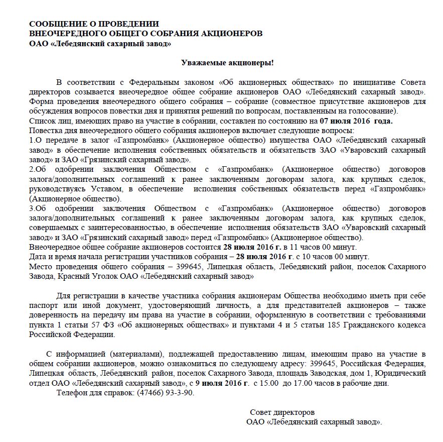 Юридический (почтовый) адрес: 399645, Липецкая область, Лебедянский район, поселок Сахарного Завода, площадь Заводская, д.1